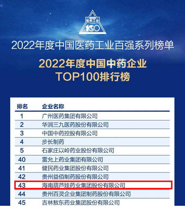 贝斯特药业集团连续4年荣登“中国中药企业TOP100排行榜”,排名上升至第43位